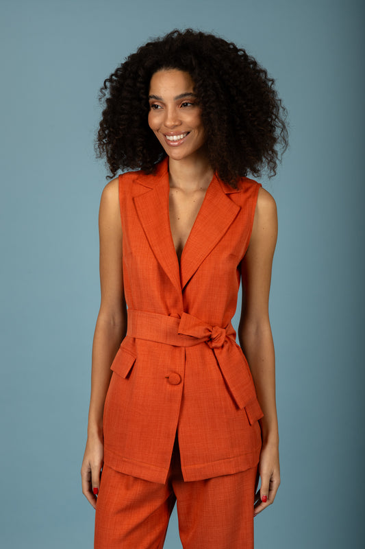 Alessandro Sleeveless Blazer (Burnt Orange)