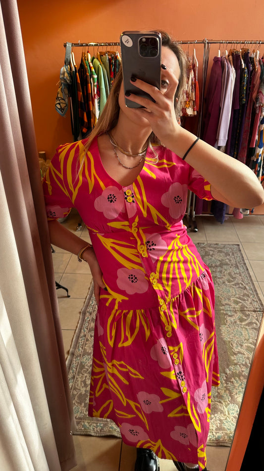 Fitted-Waist Midi Dress (floral fuchsia)