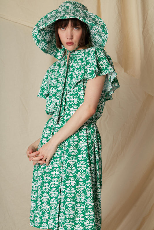 Skyrianaki Hat (Round Green Print)