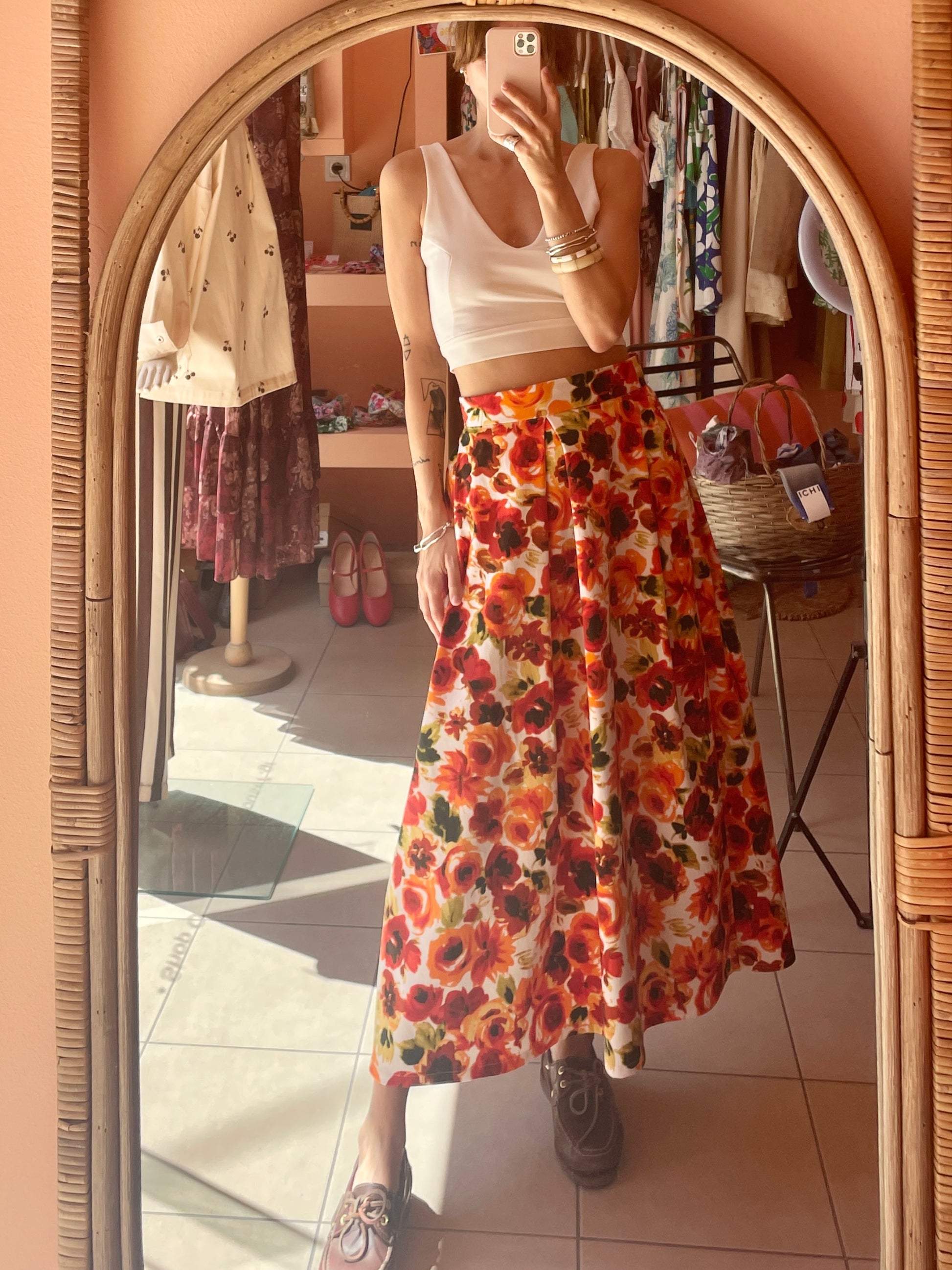 Bloom in every day with this stunning printed skirt. Wear it with your favourite flats or a pair of ankle boots and a simple top.