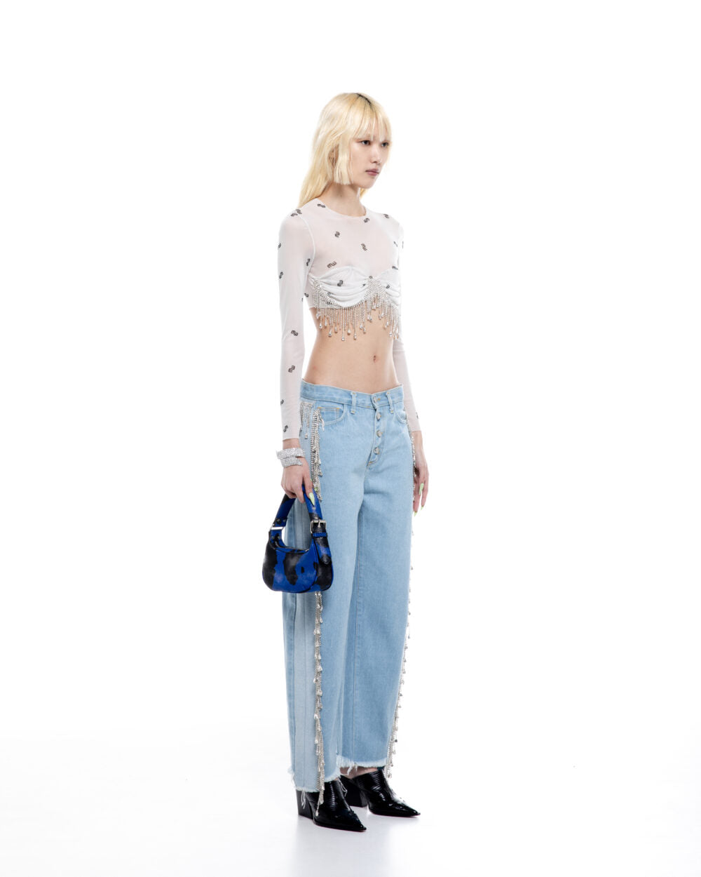 Κοντό Τοπ με Διαφάνεια και Κρύσταλλα "MW"