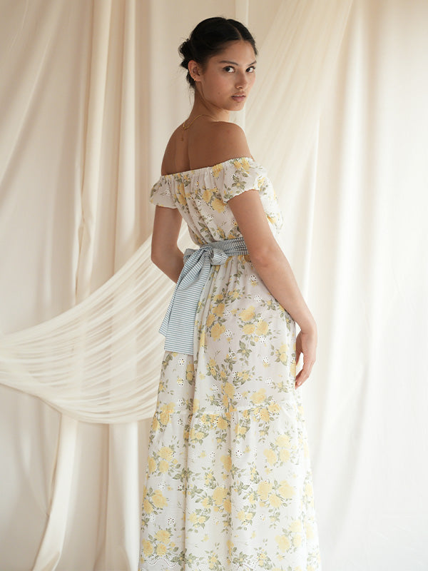 Maxi off-shoulder dress with embroidered details.