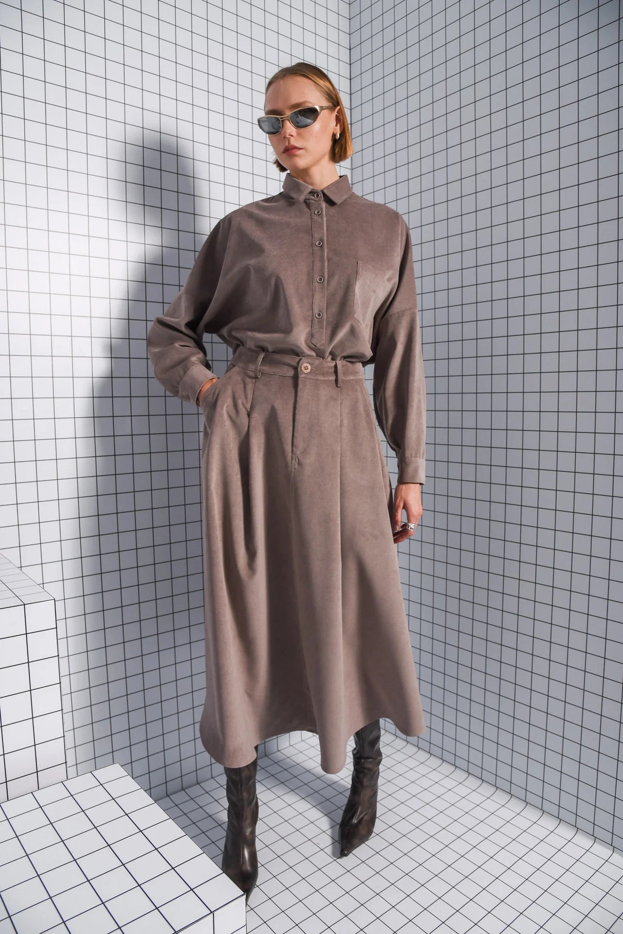 A skirt from soft, corduroy fabric to pair with your favourite body and a pair of sneakers or ankle boots.
