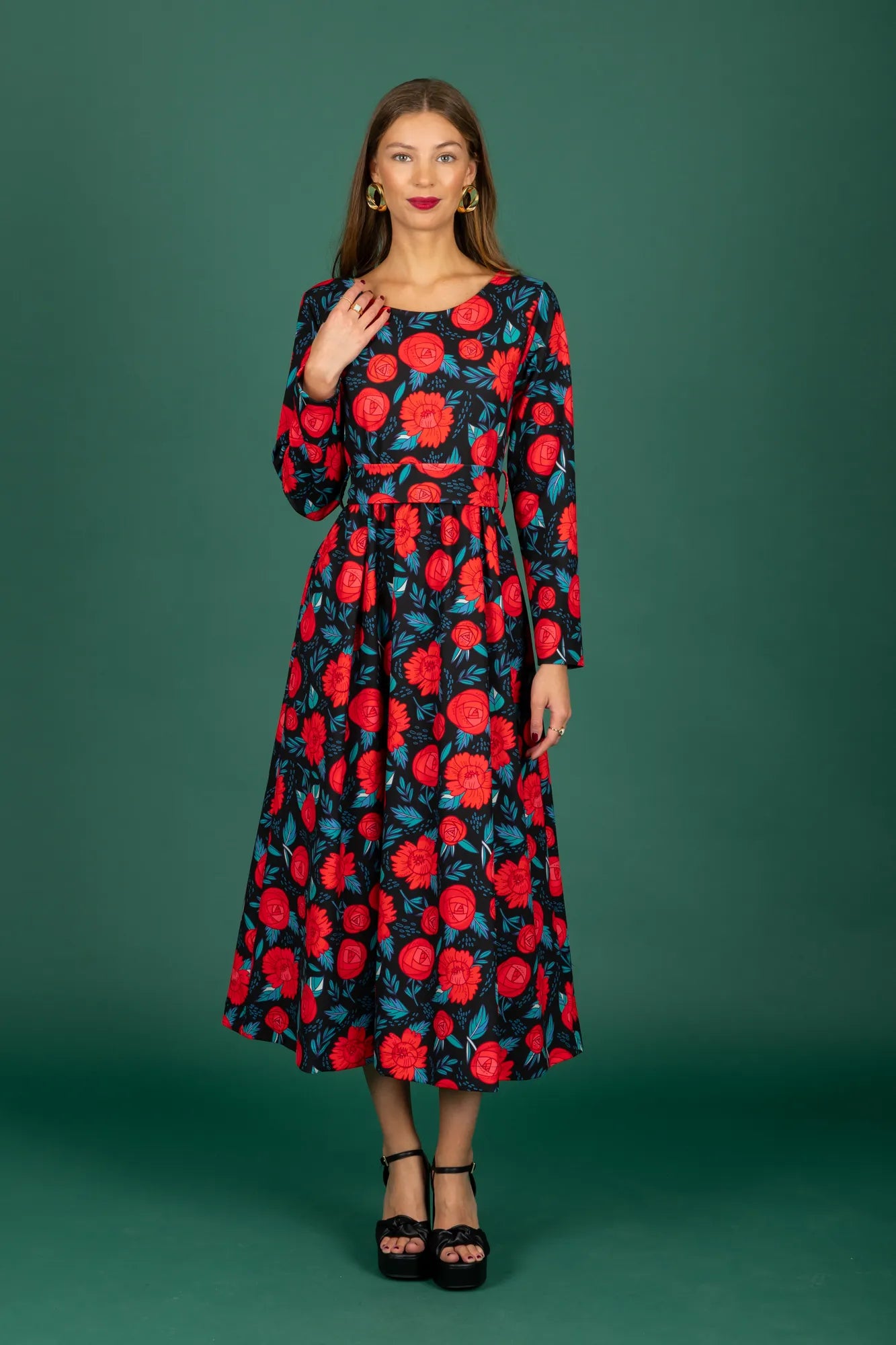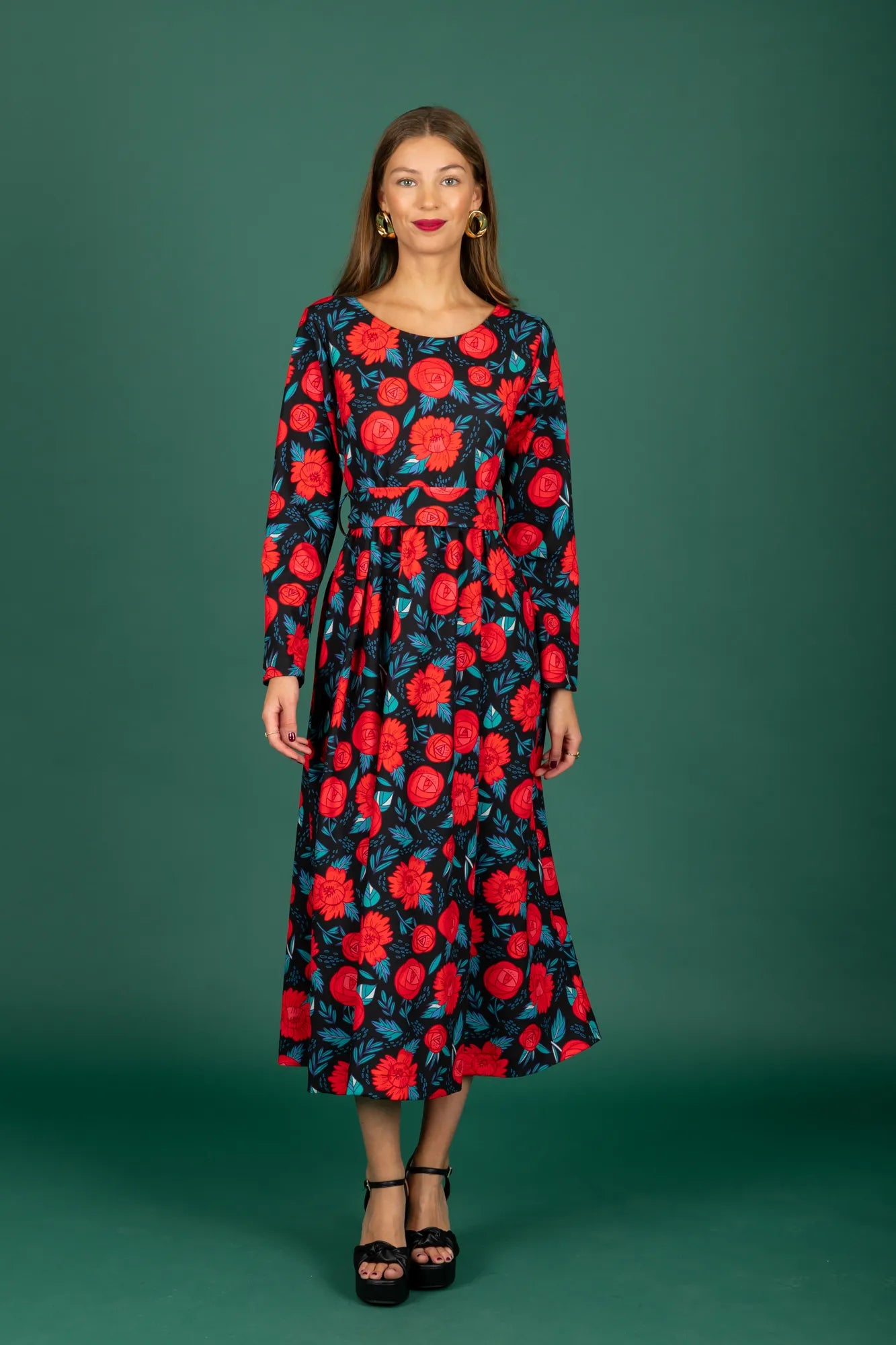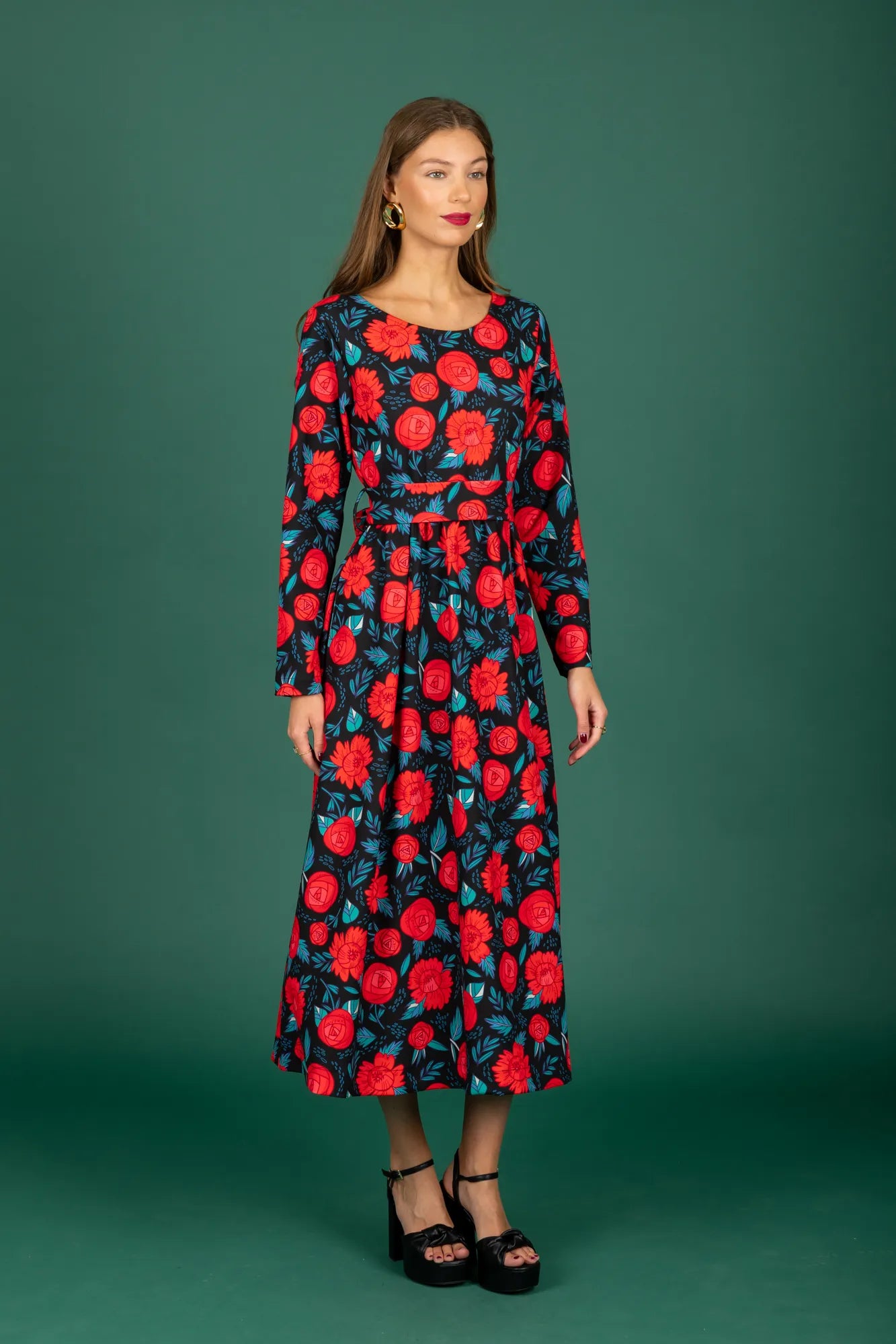Φόρεσε το Rose φόρεμα με ένα ζευγάρι μαύρα σανδάλια όσο ο καιρός το επιτρέπει και άλλαξε τα με μαύρες, ψηλές μπότες στα πρώτα κρύα.