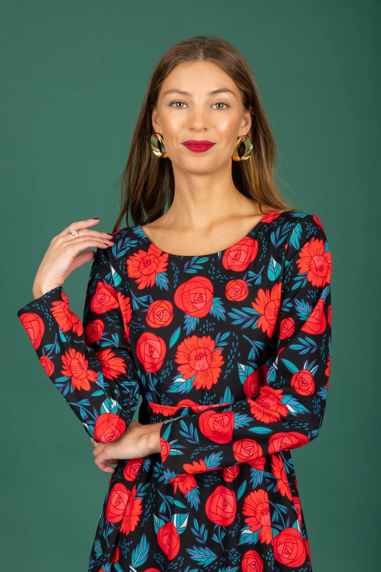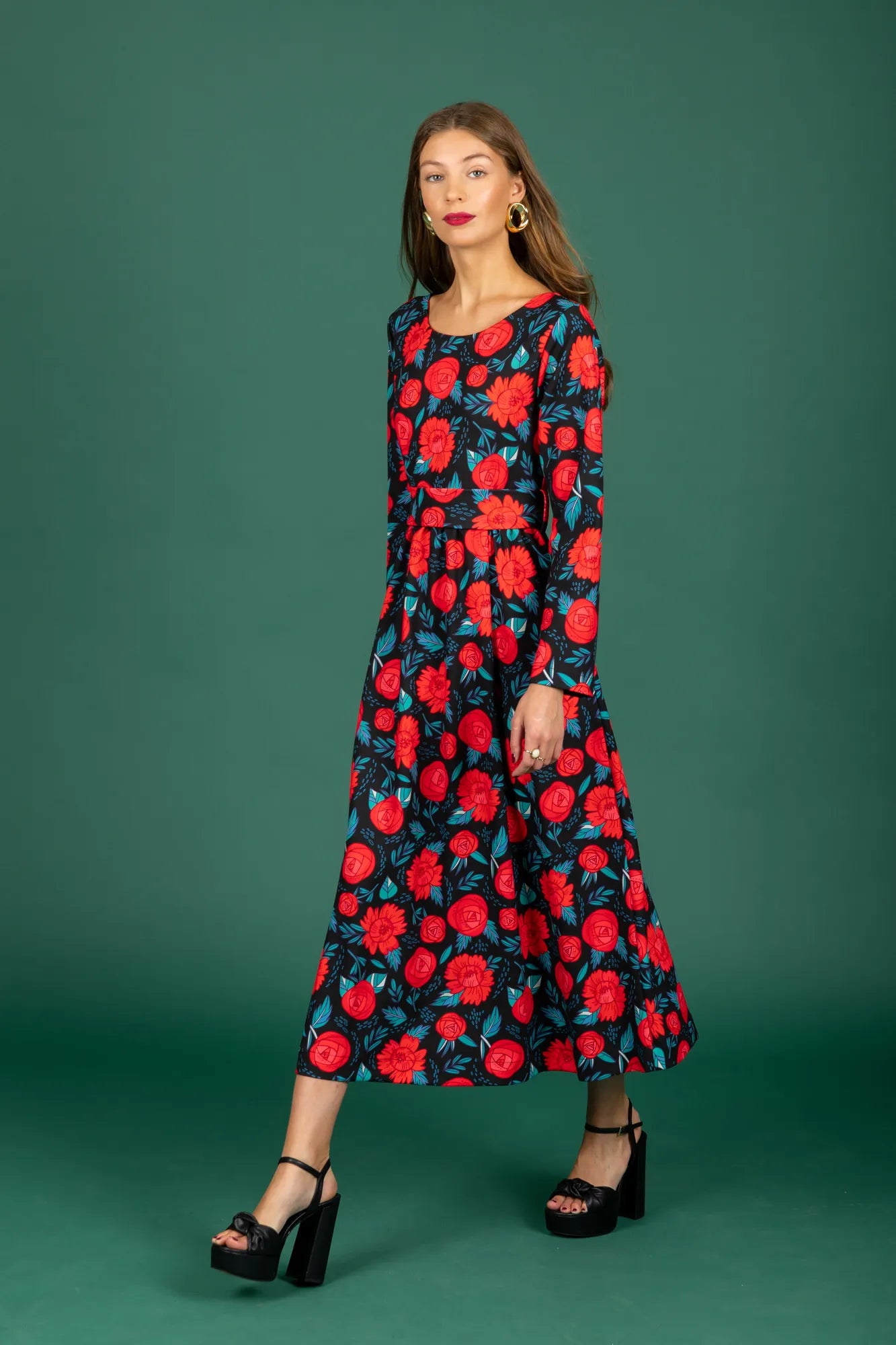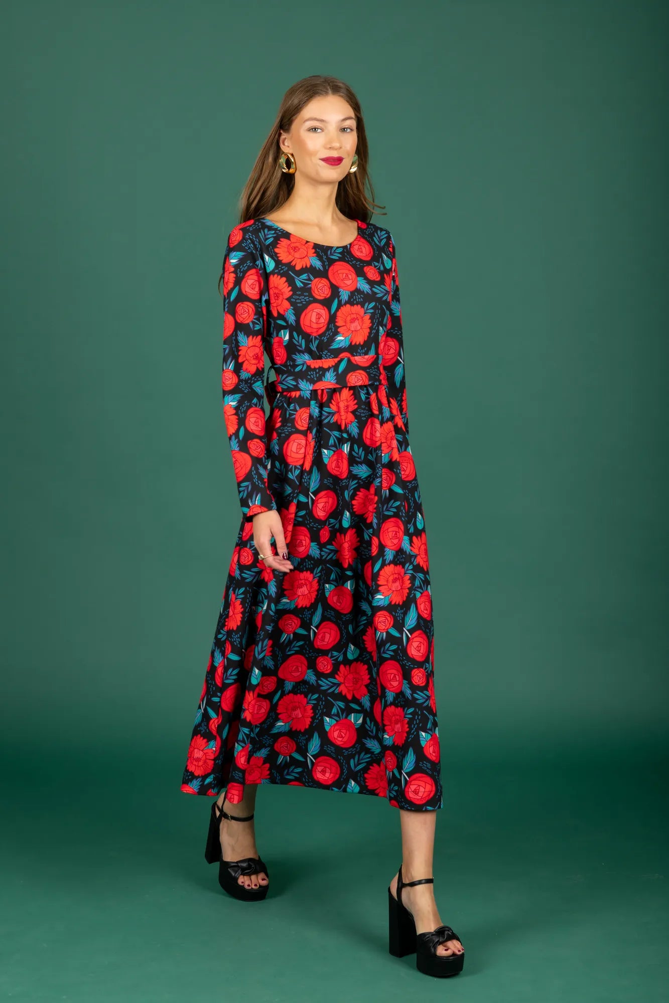 Φόρεσε το Rose φόρεμα με ένα ζευγάρι μαύρα σανδάλια όσο ο καιρός το επιτρέπει και άλλαξε τα με μαύρες, ψηλές μπότες στα πρώτα κρύα.