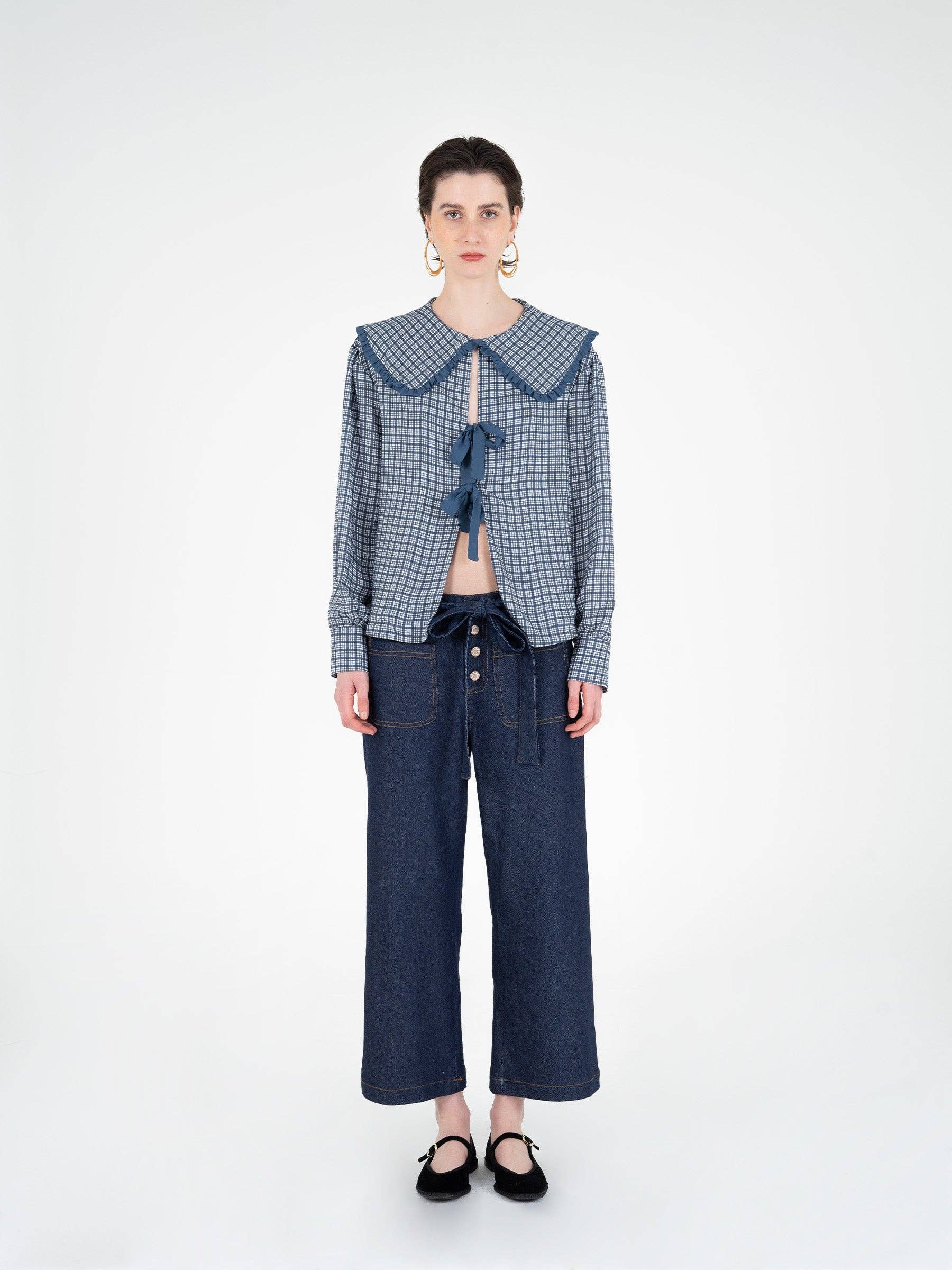 Bow Blouse w/ Maxi Bib Bollar (Mystic Tartan)