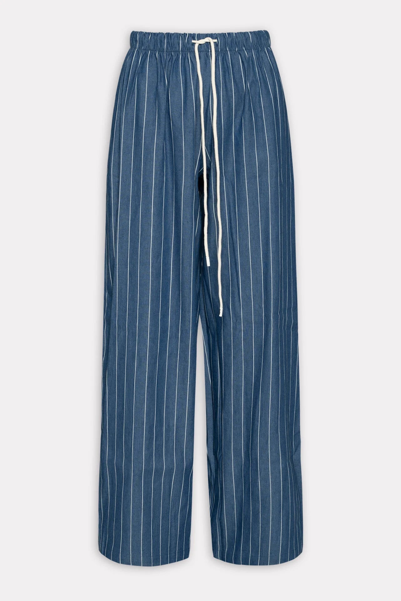 Wide-leg, relaxed fit cotton pants from lightweight striped fabric in blue shade.