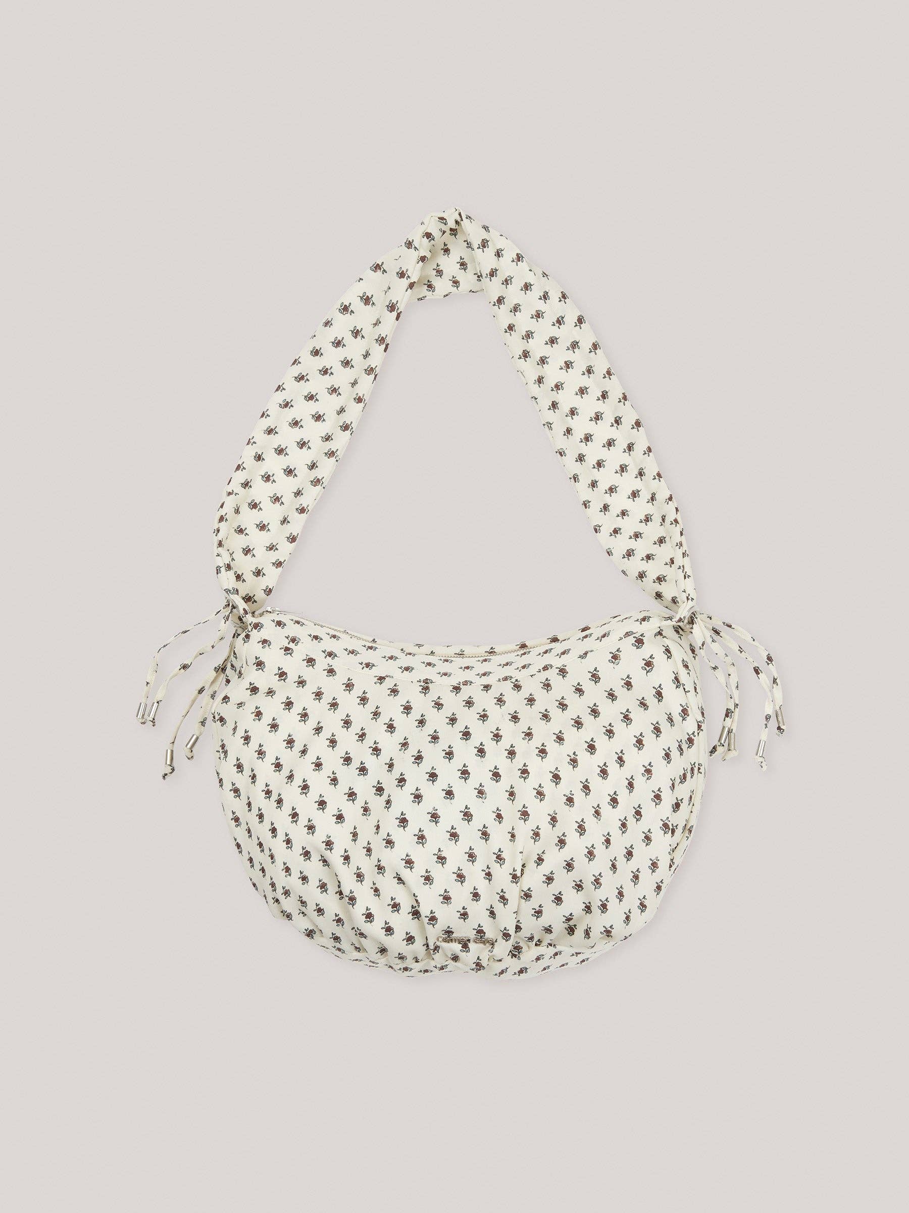 Floral print shoulder bag, a feminine and versatile accessory that adds freshness to any look. Its design stands out with an adjustable ruched handle with bows, adding a delicate and original touch, along with a practical zipper closure that ensures comfort and security.