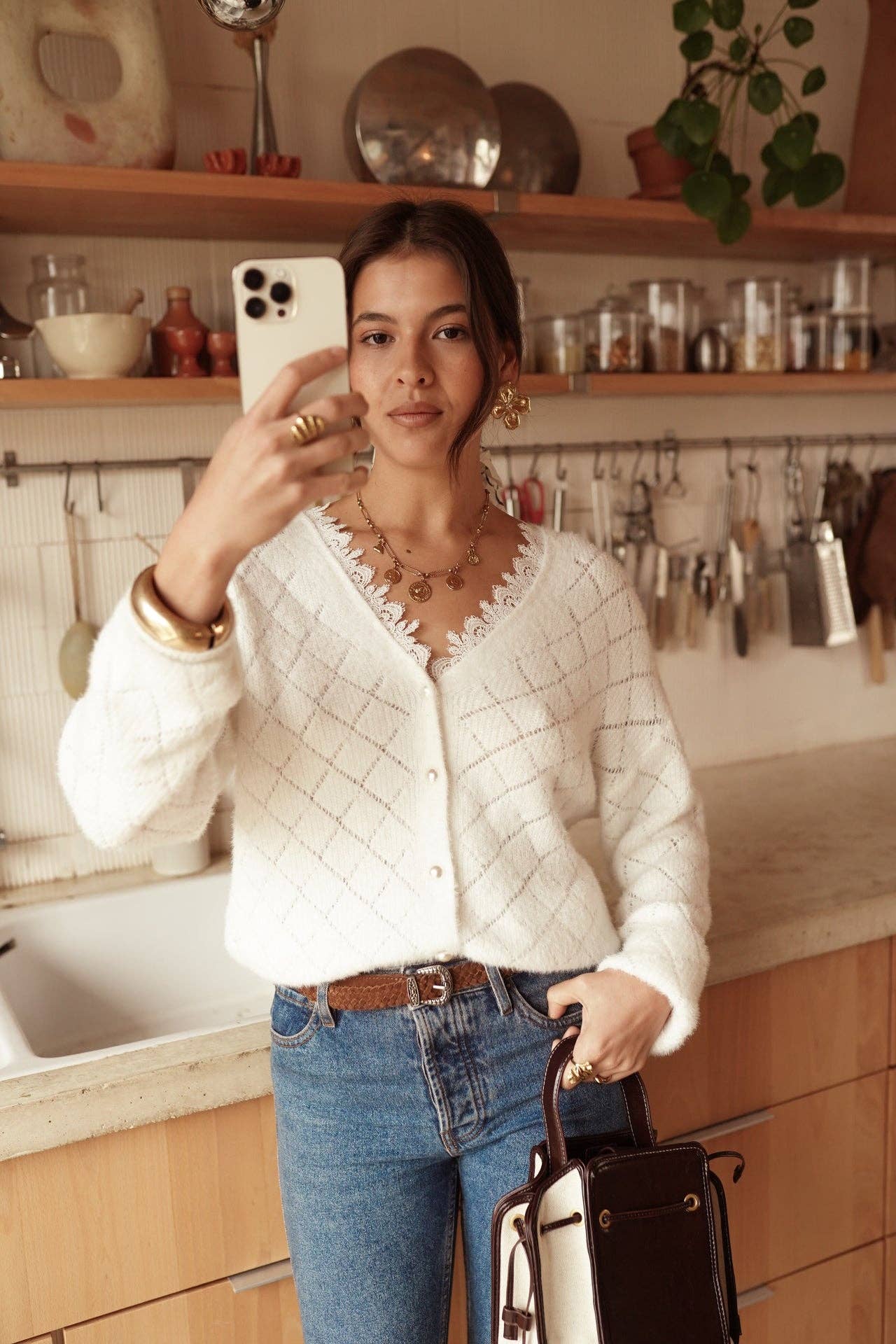 Soft, lightweight knit with a downy touch. A luminous ecru shade that's easy to pair.